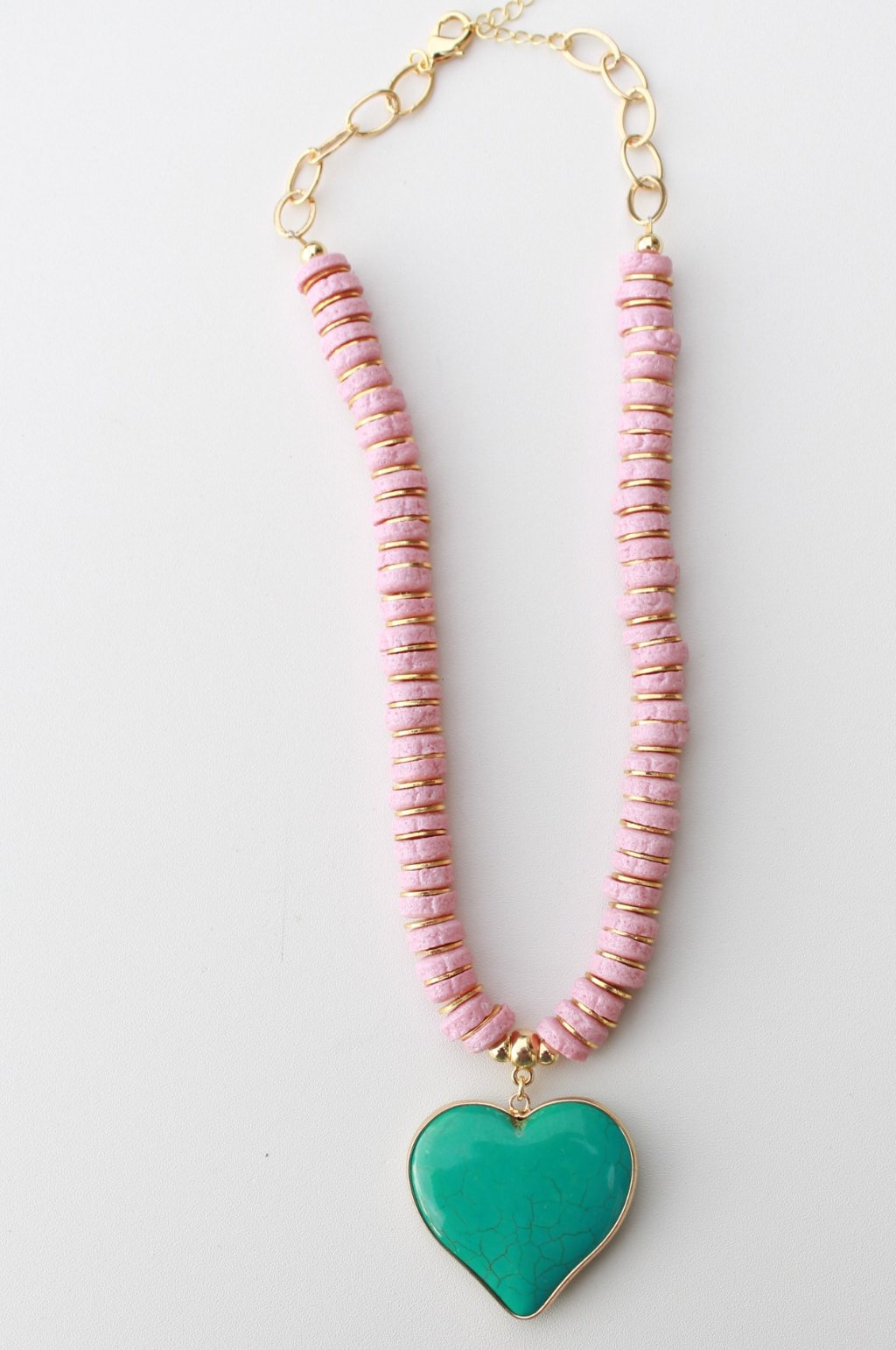 Make a bold statement with our Turquoise Love Necklace a perfect mix of edge and romance. Featuring a striking pink beaded necklace paired with a sleek heart pendant, this necklace is both eye-catching and versatile. Whether layered or worn solo, it adds a touch of modern charm to any outfit.