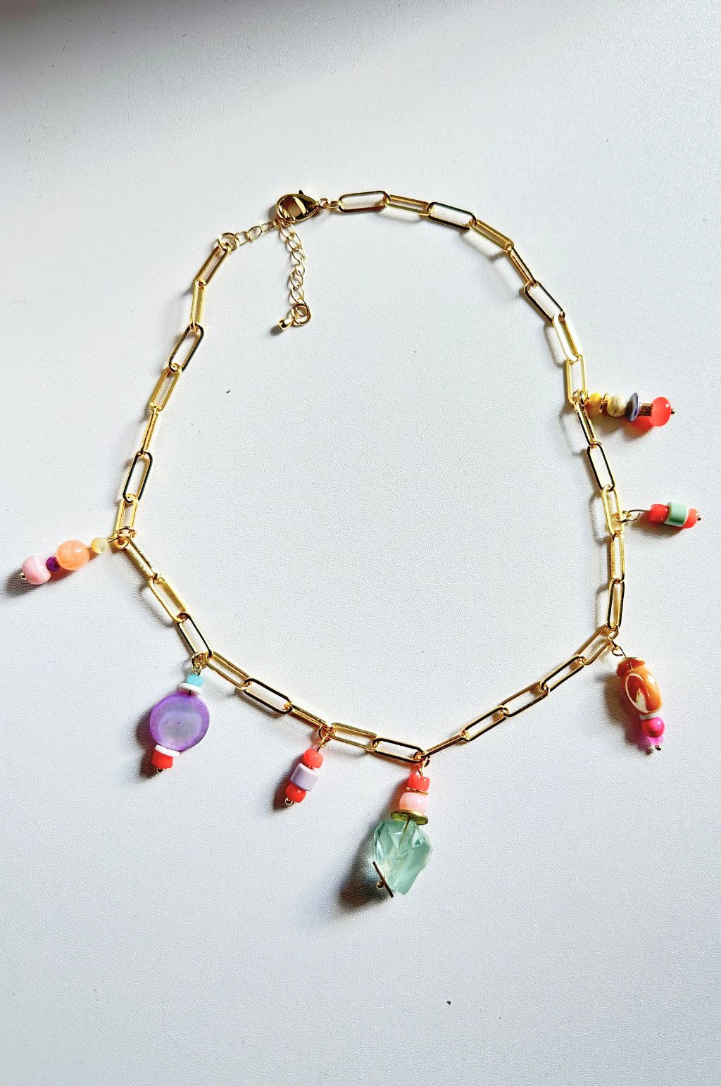 Our playful new spin on the classic charm necklace!  Each piece is completely unique — no two are ever the same. Charms are hand-selected by Annie Claire and thoughtfully arranged into a beautiful design that tells its own story.