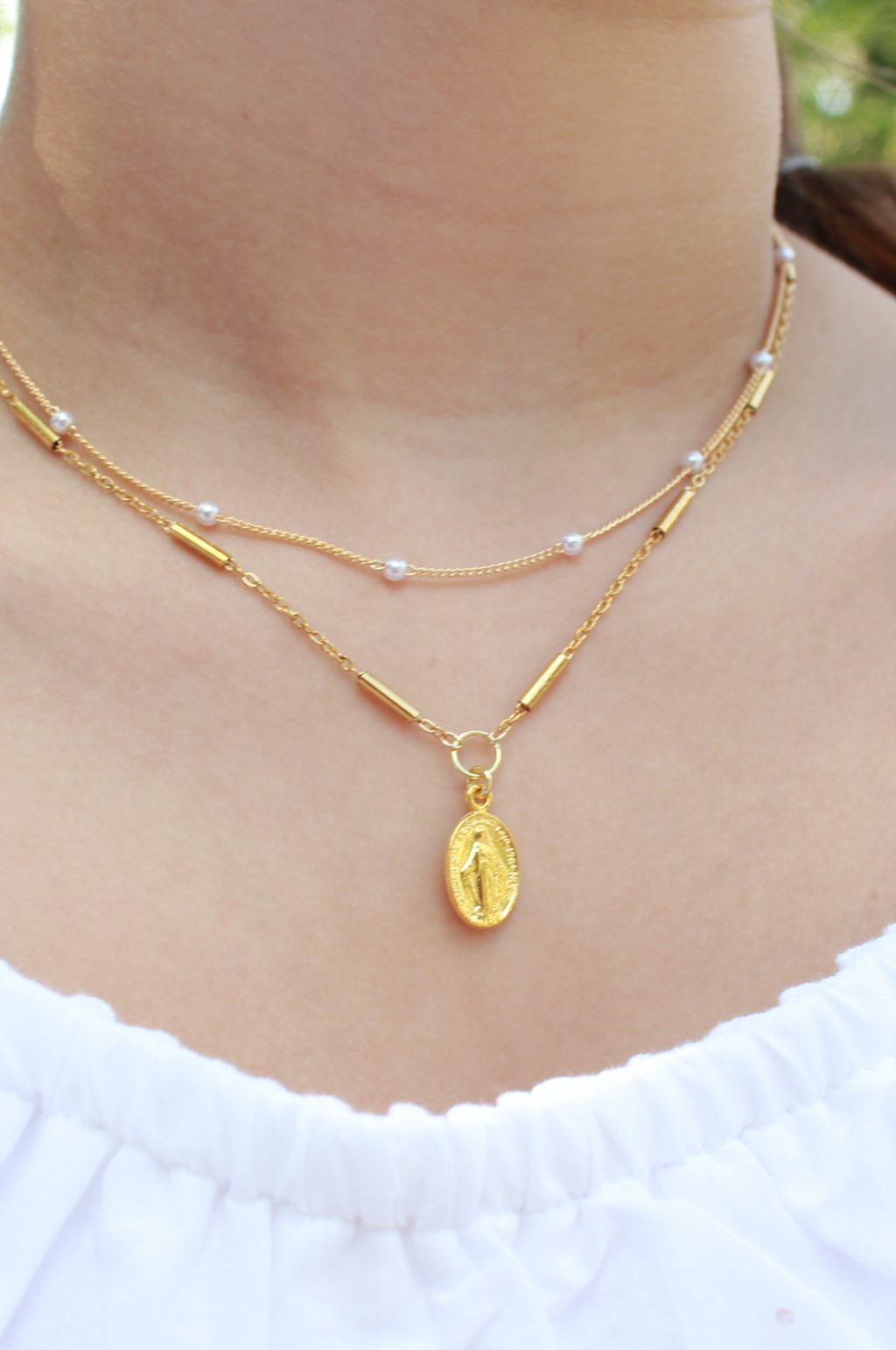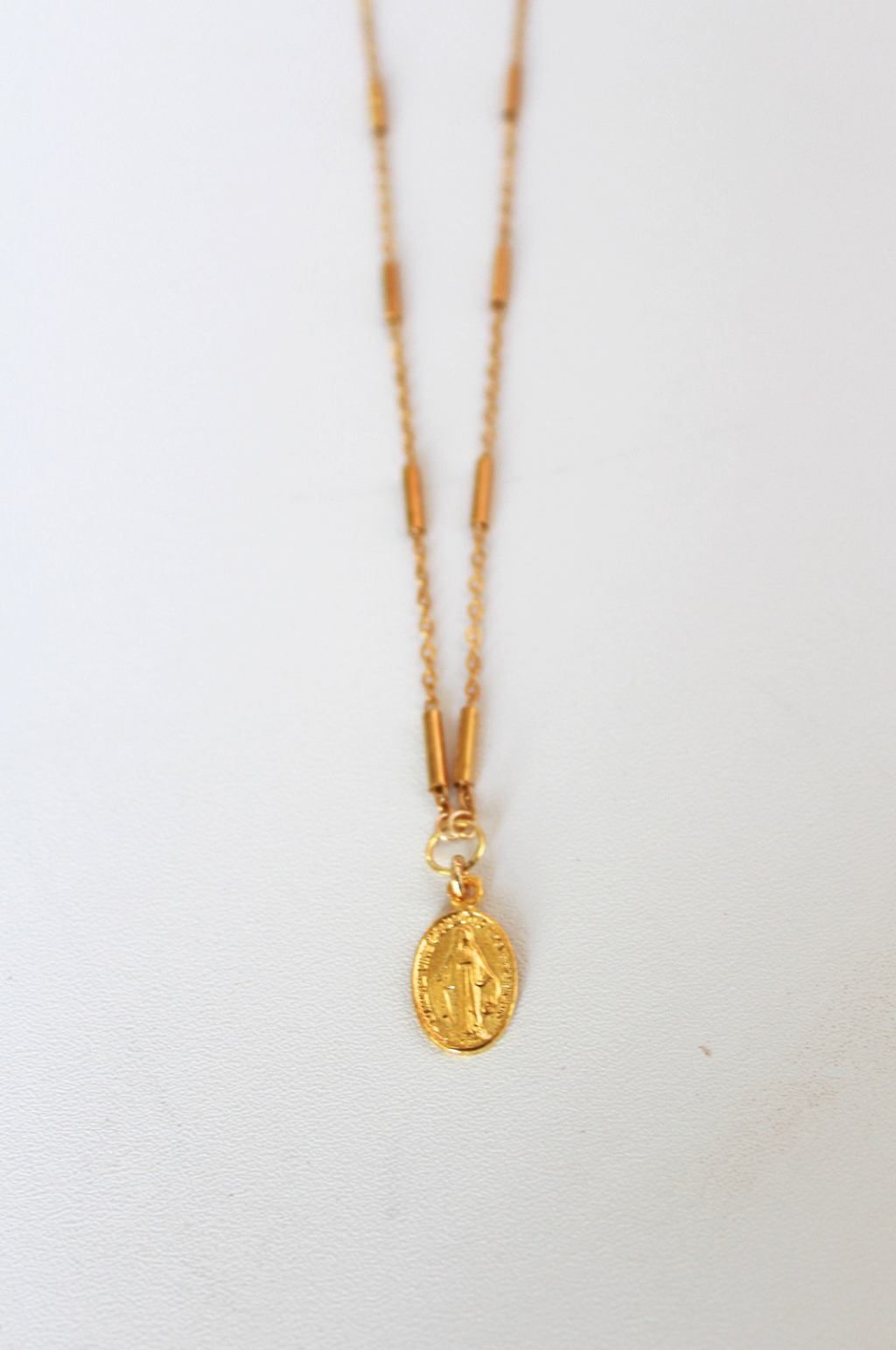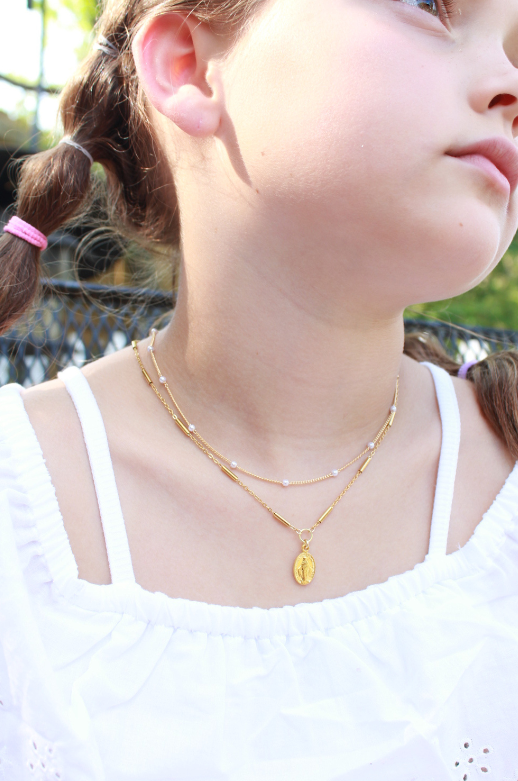 Delicate, meaningful, and made just for little ones, this Mary Charm Necklace is a beautiful way to celebrate faith and love. Featuring a finely crafted pendant of the Blessed Mother, this necklace is designed with soft, kid-friendly details and a lightweight feel for all-day comfort.
