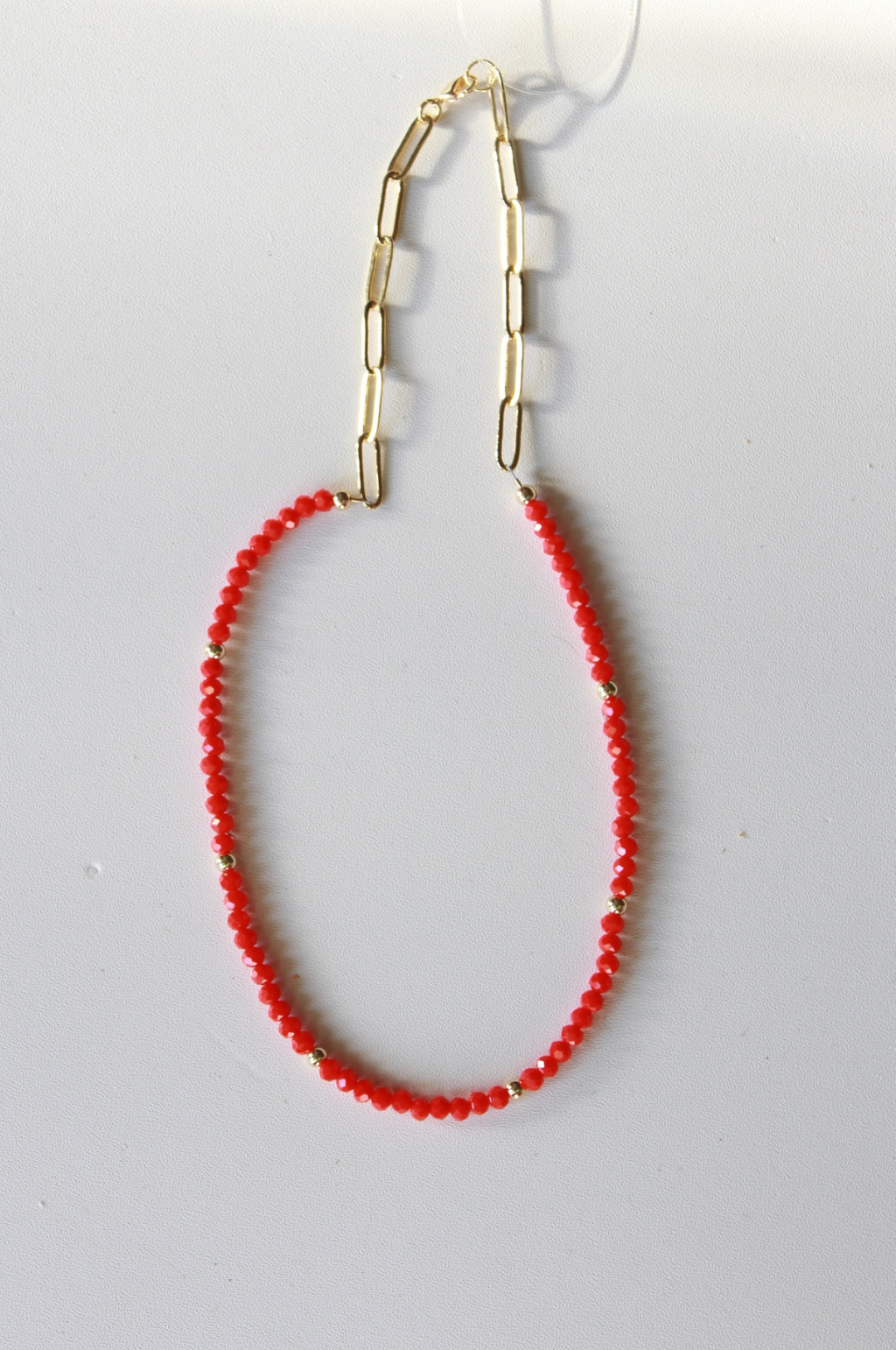 Add a little glow to your everyday look with this hand-beaded necklace. Each bead has its own natural shimmer, showing off soft flashes of orange that catch the light in the prettiest way. Since every bead is unique, no two necklaces are exactly the same.