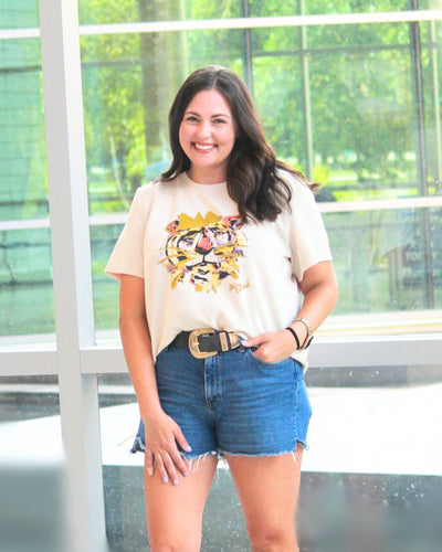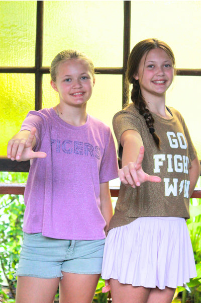 A SoSis Gameday Tradition isn’t your average tee—it’s a vibe. Think casual comfort with elevated details that make all the difference. Featuring screen-printed designs with bold colors and luxe metallic accents, these tops are made to stand out in the crowd while keeping you effortlessly game-day chic.
