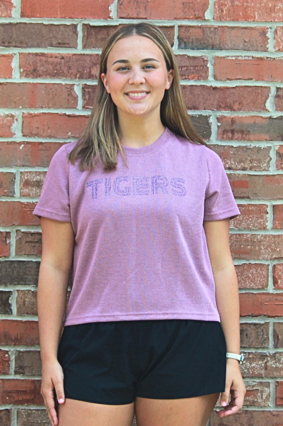 SoSis Signature Mid Length Sparkle Boxy Tee TIGERS bold text