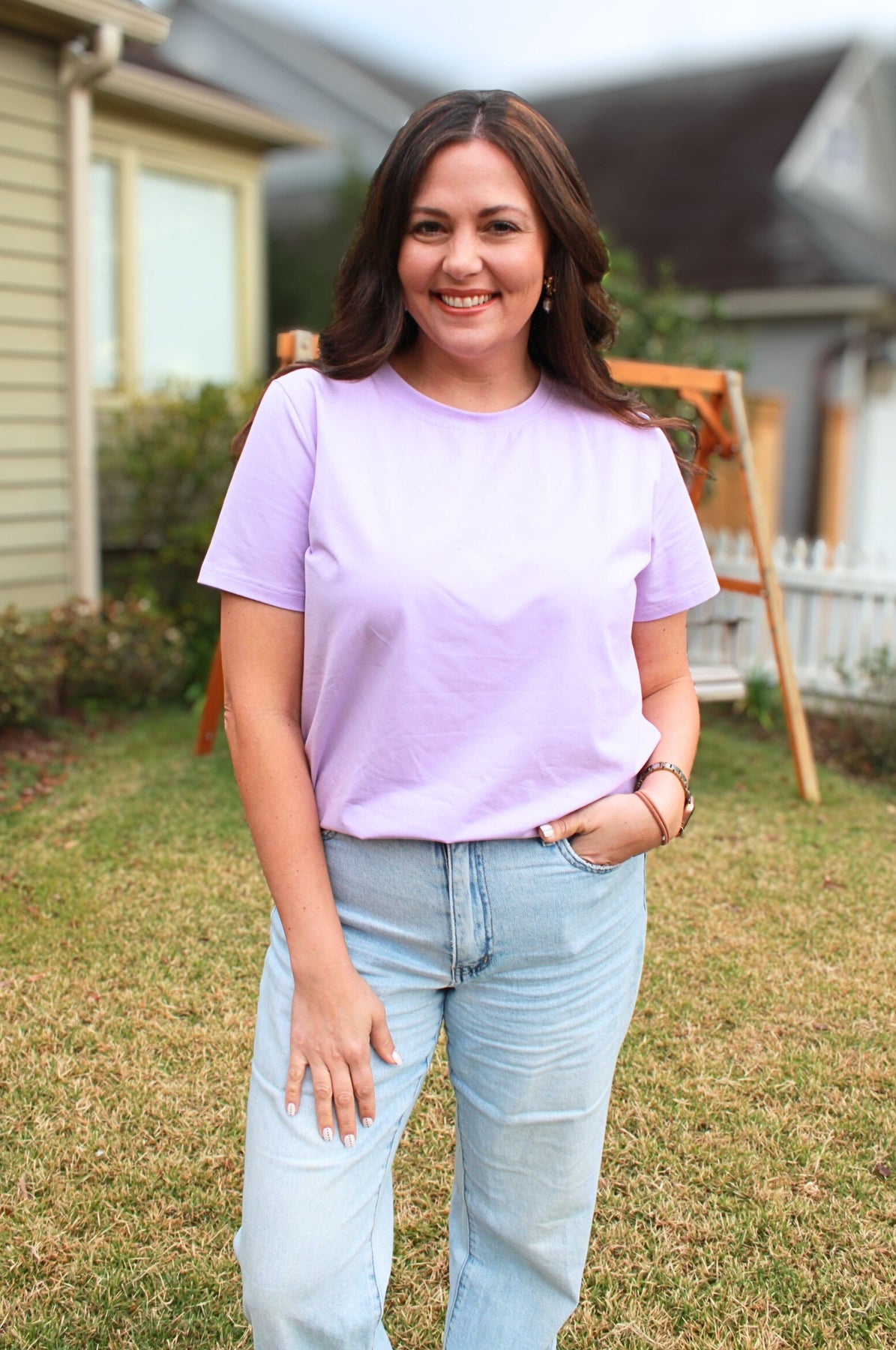 Introducing the quintessential wardrobe staple: the SoSis Classic tee. Crafted with precision and attention to detail, this tee embodies effortless style and timeless elegance.  Made from premium, ultra-soft and stretchy fabric, it offers unmatched comfort and breathability, ensuring you feel as good as you look. The relaxed yet flattering fit drapes beautifully on every body type, creating a silhouette that's both comfortable and chic.  Its classic crew neckline and short sleeves provide a versatile canvas for endless styling options. Whether paired with jeans for a casual weekend look, layered under a blazer for a polished office ensemble, or tucked into a skirt for a night out, this tee effortlessly adapts to any occasion.
