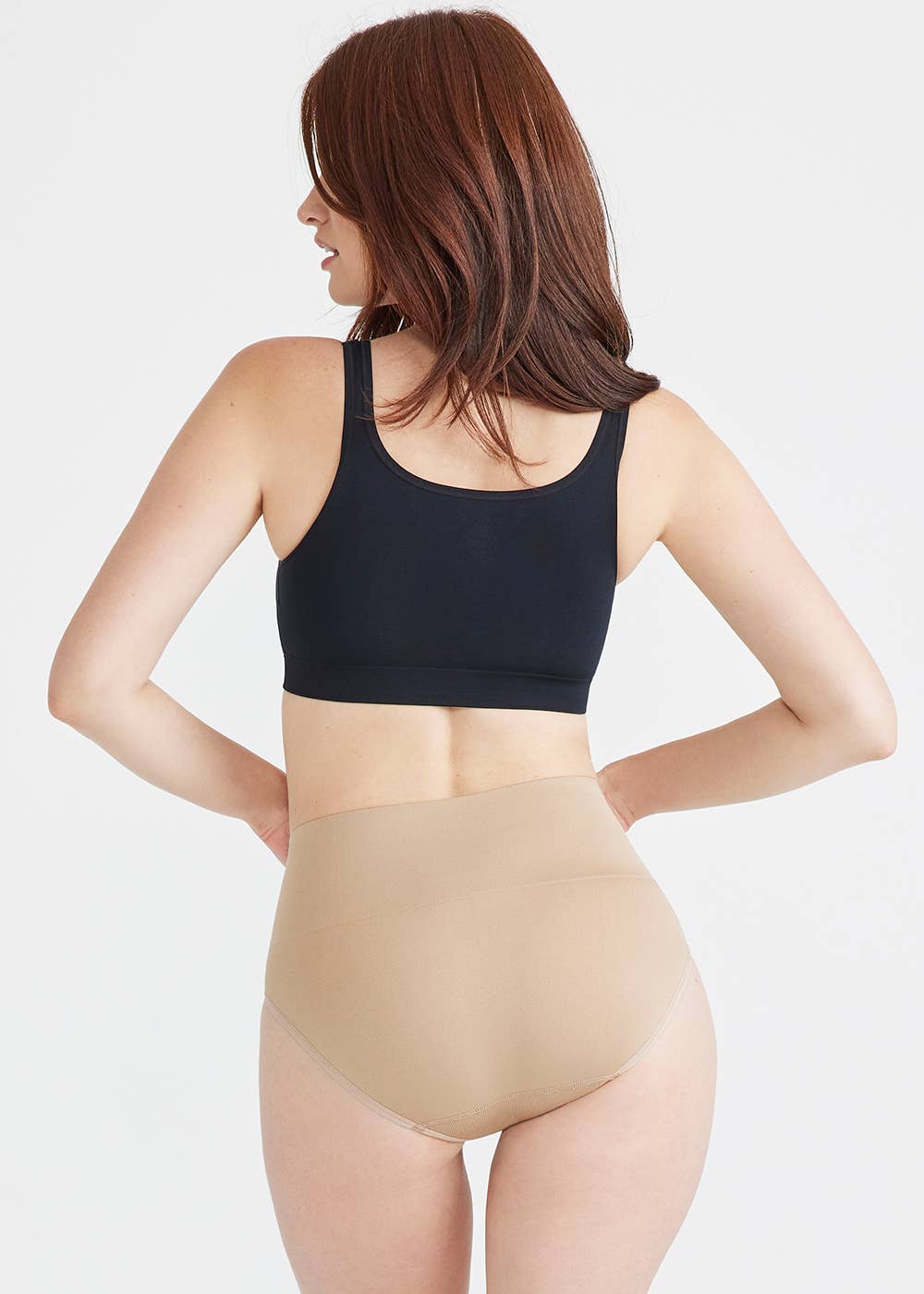 With firmer compression than the Ultralight Shaping Brief, Our Sage Shaping Brief is a great addition to your wardrobe. • Medium shaping • Wide 2-ply waistband provides shaping at your tummy • Soft flat elastic at legs • Comfortable sideseam free construction